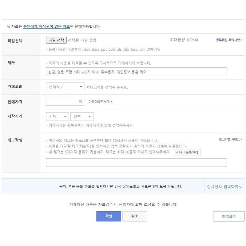판매 가격은 나의 자료를 볼 사람들의 연령대를 생각하며, 그에 맞는 금액을 설정하시는 것이 좋습니다.