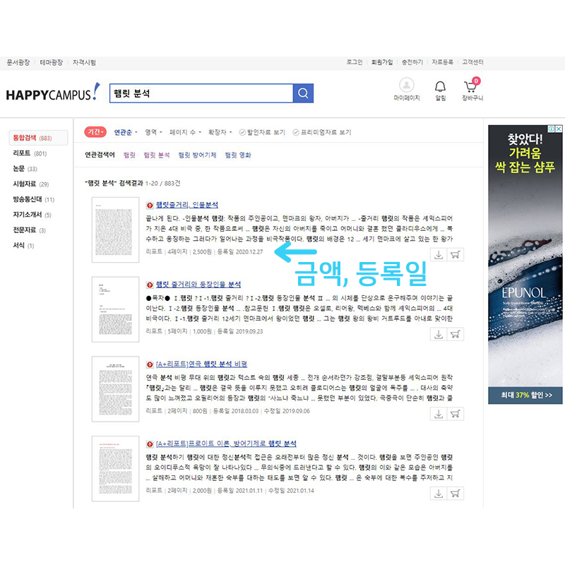 해피캠퍼스는 대학레포트,방통대,자소서 등을 제공하는 서비스입니다.