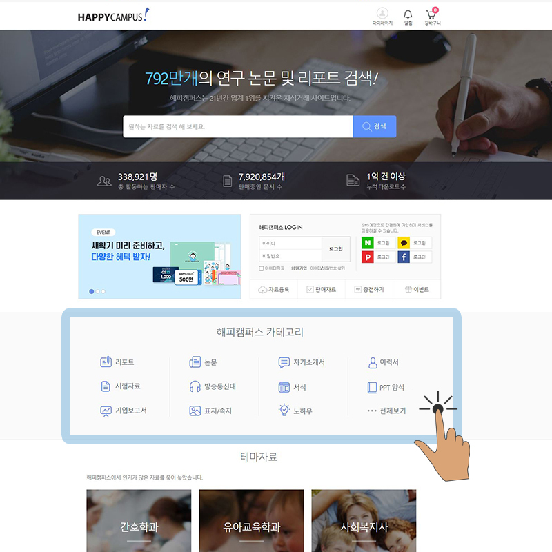 자료 팔고 소소하게 돈 벌기! '해피캠퍼스' 홈페이지 리뷰 본문