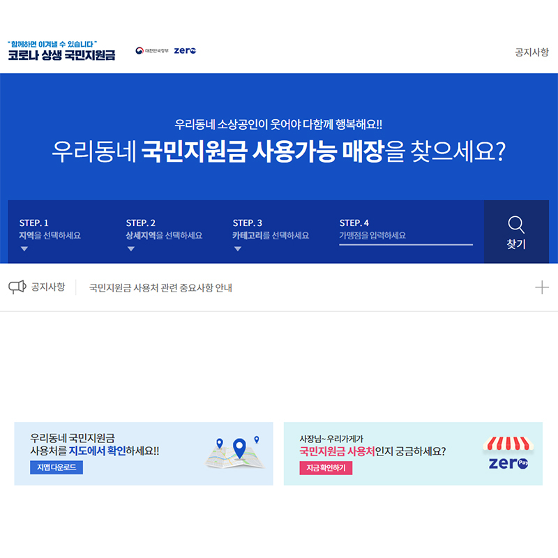 혹은 국민지원금 제로페이 사이트에서 신청 하실 수 있습니다.