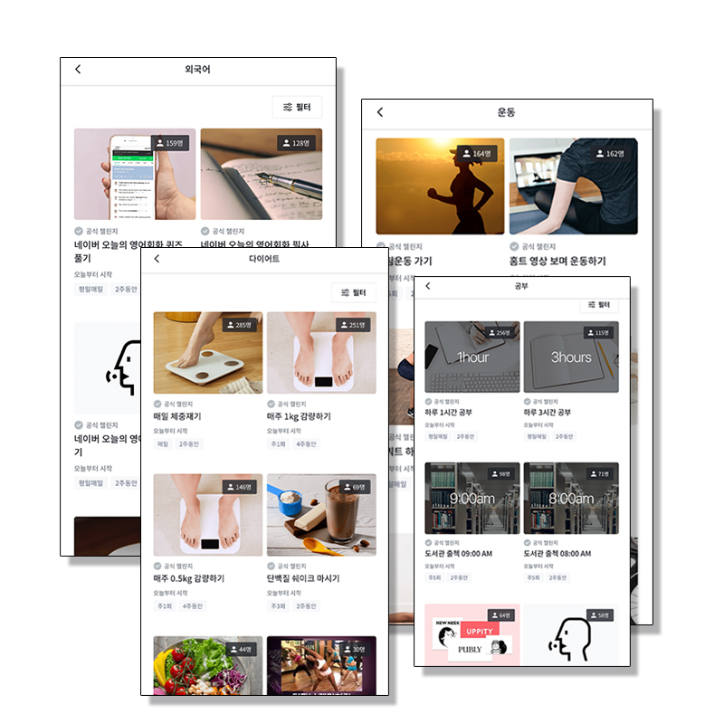 각 카테고리에 어떤 도전들이 있는지 눌러보도록 할게요~!