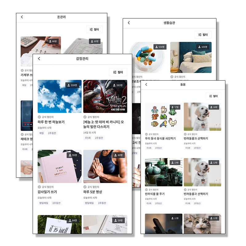 카테고리(돈 관리, 감정관리, 생활습관, 돌봄)