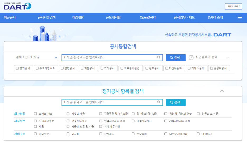 기업들의 재무제표를 한 곳에! 전자공시시스템 DART 본문