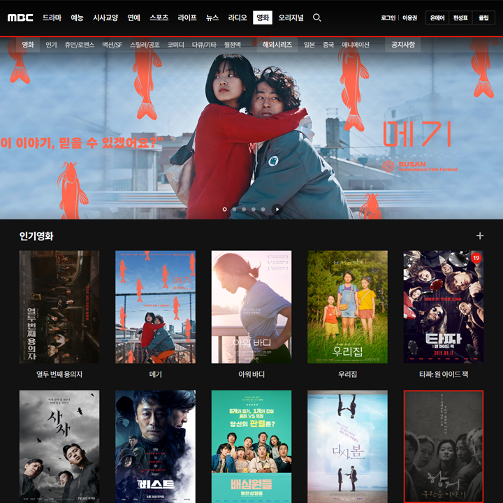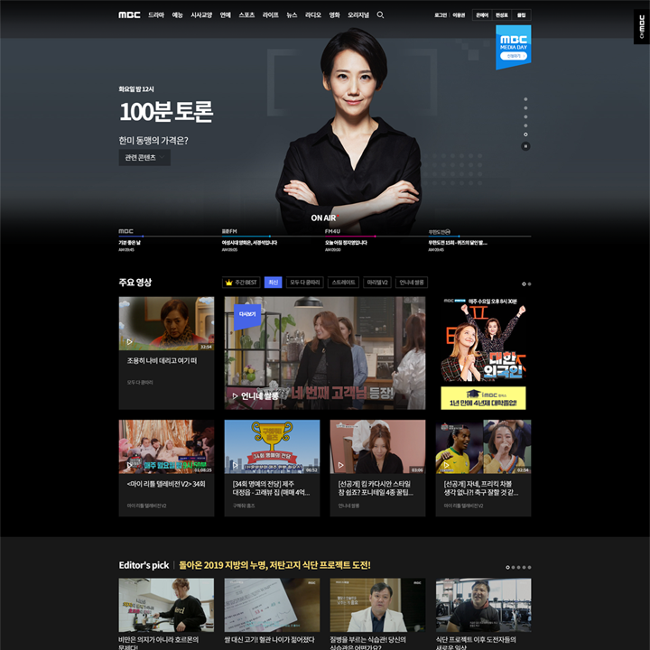 그래서 mbc의 어두운 배경을 베이스로 한 웹 페이지는 현재의 트랜드를 반영한 부분이라고 생각합니다.