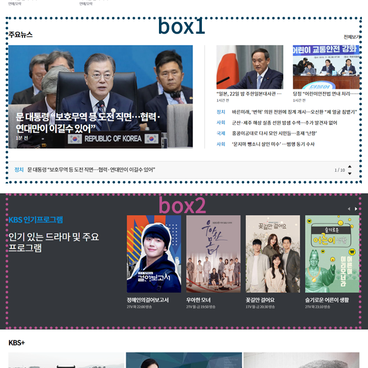 box3의 경우 자극적이고 사람들이 많이 보는 뉴스등의 컨텐츠를 넣어 상대적으로 눈이 갑니다.