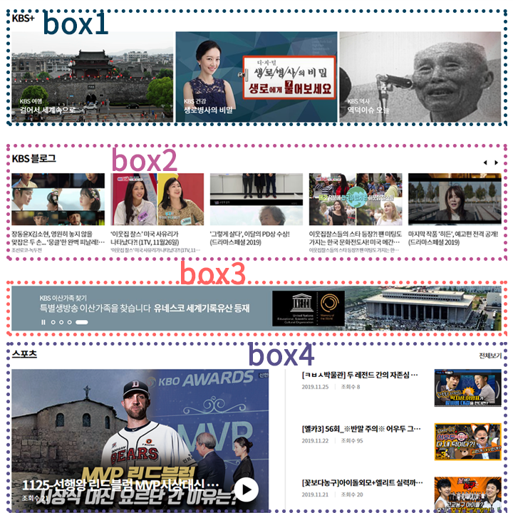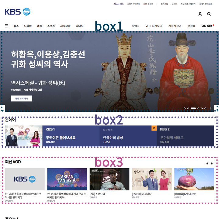 방송국 webpage 어떻게 구성할까? (SBS, MBC, KBS) 본문