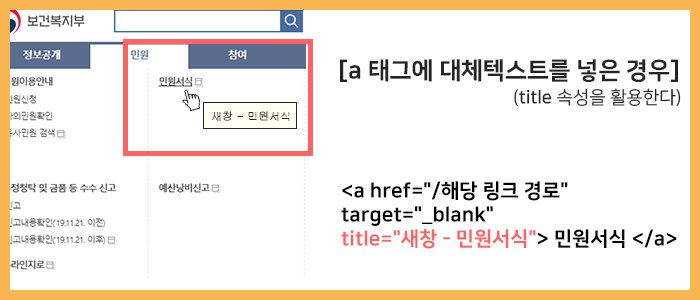 2. 다른 링크로 넘어갈 때는 title 속성을 이용해 정보를 미리 제공한다.