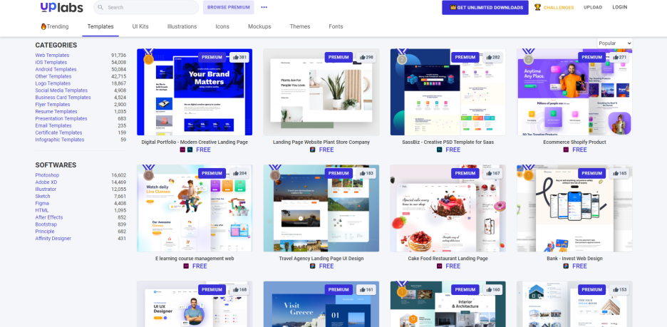 디자인 템플릿을 판매하는 사이트인 uplabs입니다!