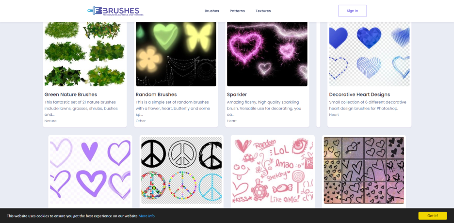이 웹사이트도 좋은 퀄리티의 브러시들을 제공하는데요.