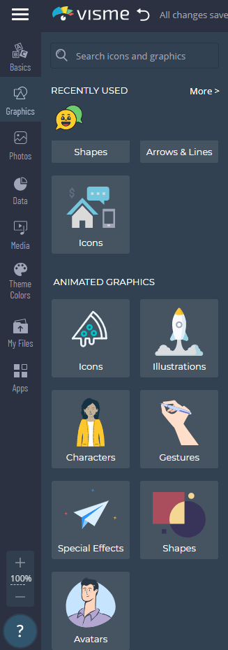 Visme 내에서 자체제공하는 콘텐츠가 정말 많습니다!