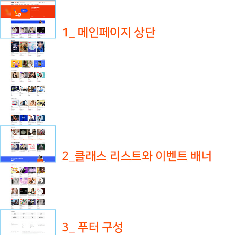 메인페이지는 이와 같이 세 가지 구성으로 나누어 보겠습니다.
