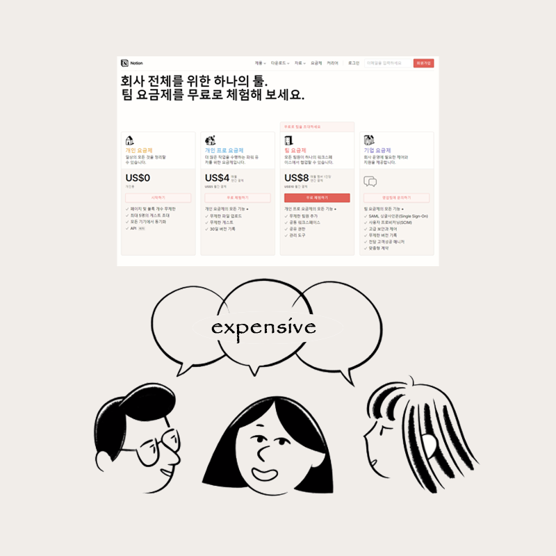 여러 인원이 사용하게되는데요. 대게 이런 툴들이 다 그렇듯 노션도 무료는 아닙니다. ㅠㅡㅜ