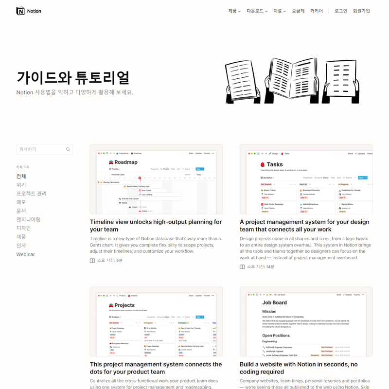 지원하는 프로그램입니다. 오늘은 웹 기준으로 노션을 살펴볼거에요~!