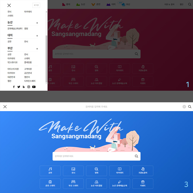 햄버거 메뉴, 각 상상마당의 지점, 검색기능을