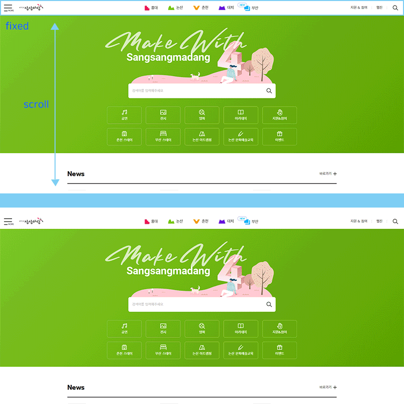 스크롤을 내리게 되면 최상단의 header가 fixed 되어서