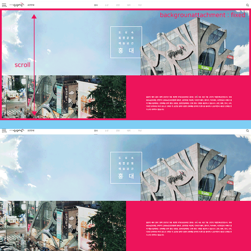 이미지가 고정된 것을 상단의 이미지를 보면 쉽게 알 수 있습니다.