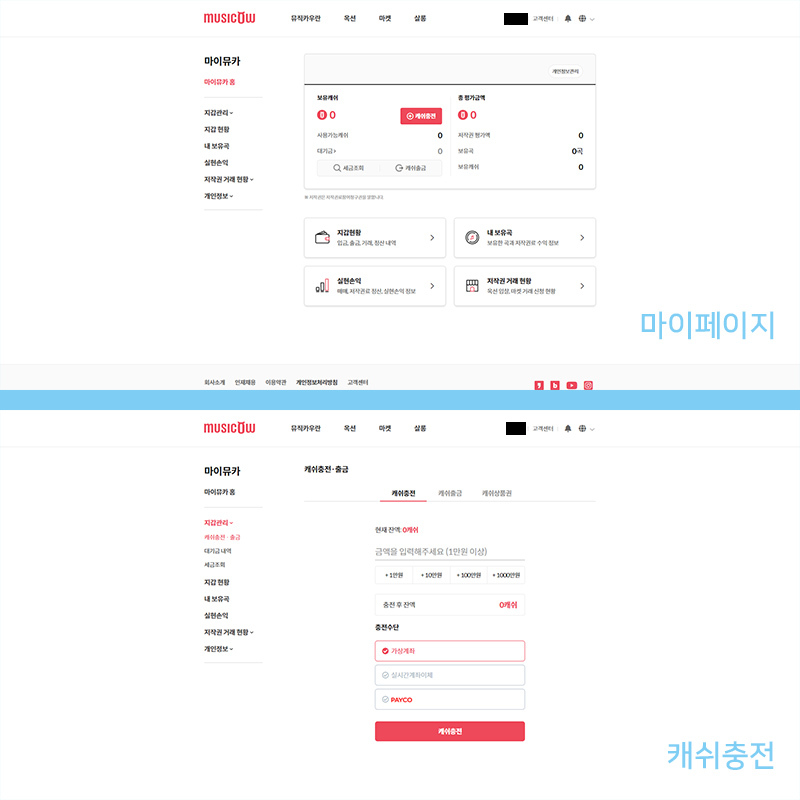 이 사이트에서 가장 중요한 캐쉬 충전 부분은