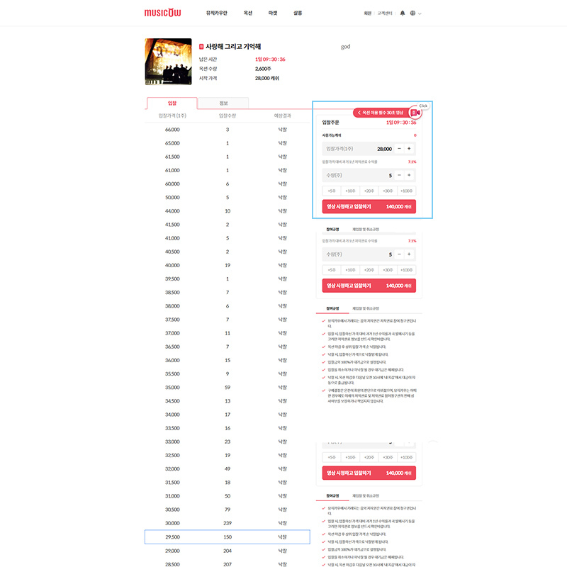 말 그대로 해당시간에 음악 저작권을 거래하는 옥션