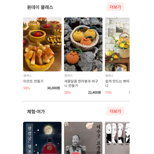 신규 오픈, 원 데이 클래스, 전시회, 체험, 여가 부분은