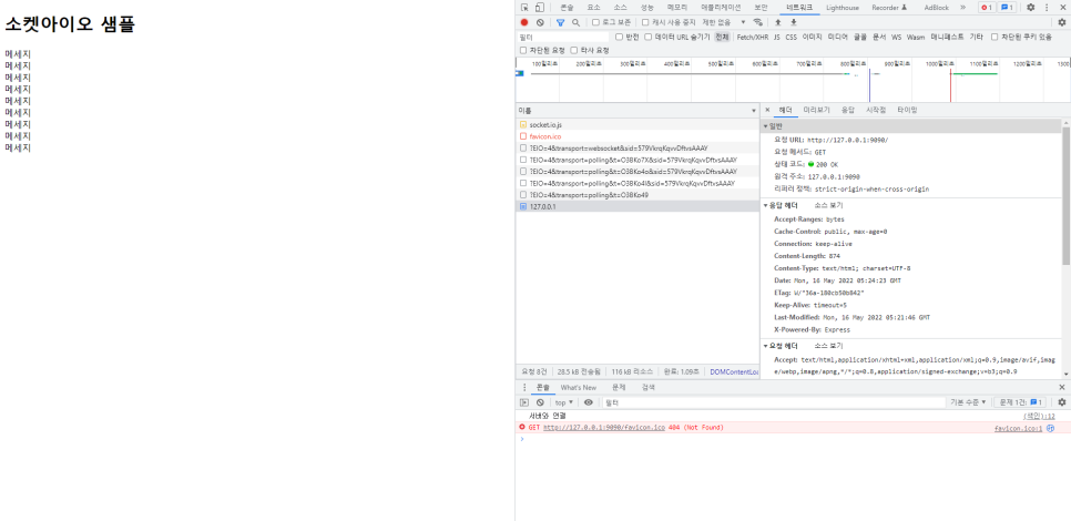 그리고 socket.io 서버에서 보내준 js 파일을 받고 소통을 할 수 있는 준비를 해야 합니다.