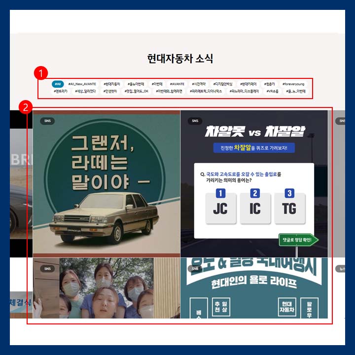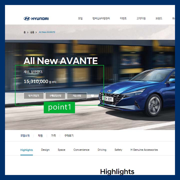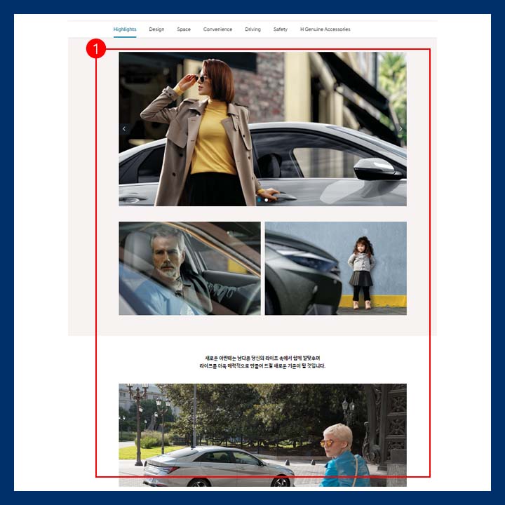 현대자동차는 시선이 집중되는 메인컨텐츠하단에