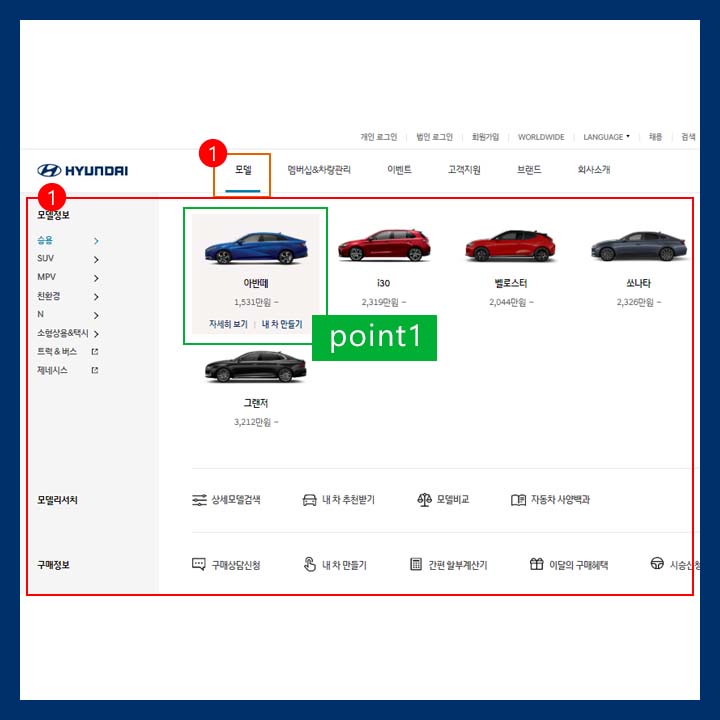 현대자동차에서 최대한 심플하고 명확한 레이아웃을