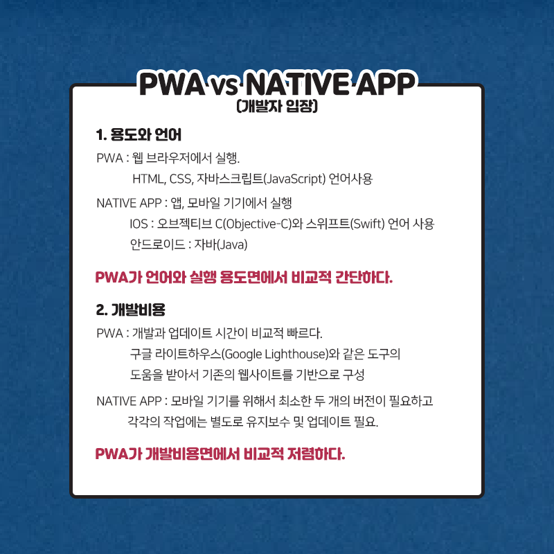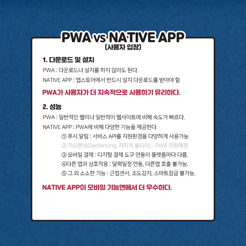 그렇다면 PWA를 사용한다면 개발자와 사용자는 어떻게 느낄까요?