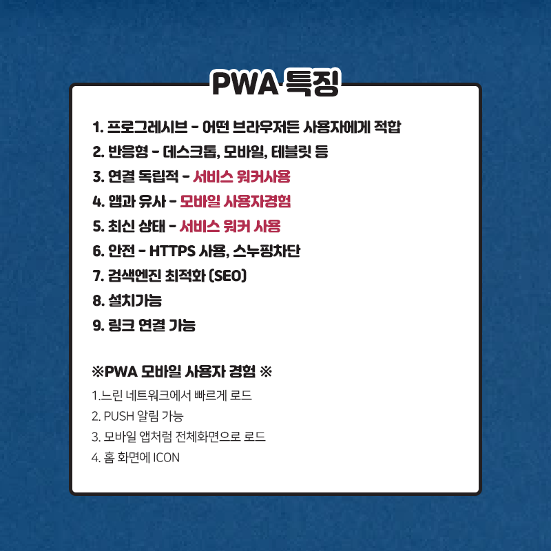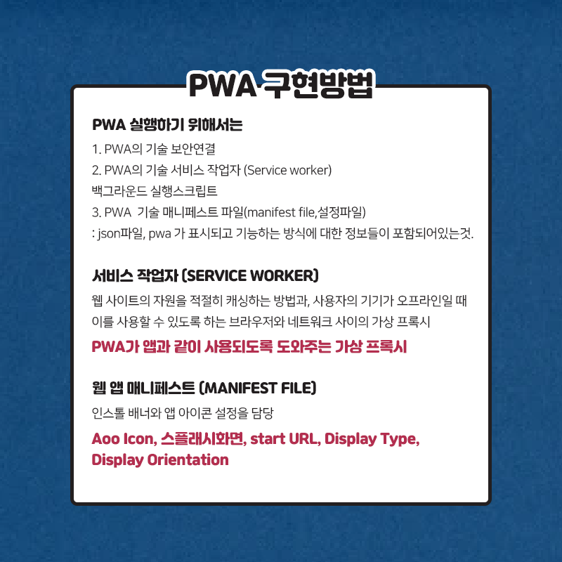 PWA를 구현하기 위해서 필요한 부분들에 대해