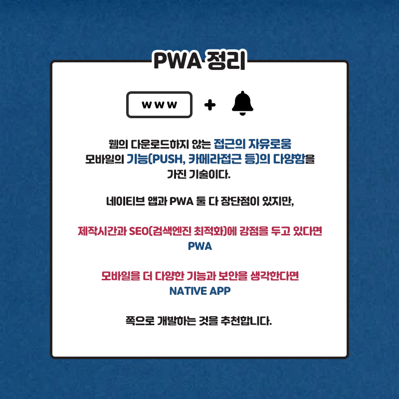 모바일에서 사용자 경험을 제공하는 기술로 웹과 앱의 장점을 결합한 기술 입니다.