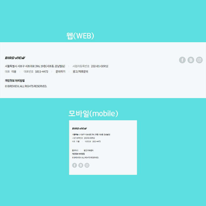 회사의 아이콘, 주소, 등등 필요한 정보와 타이틀 및