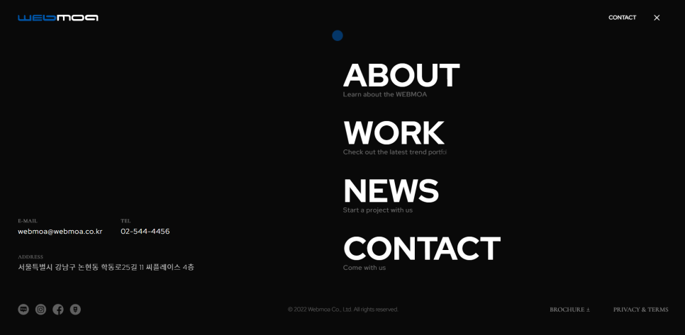 스크롤을 살짝 내리면 배경이 블랙으로 변경되면서 고급스러운 느낌을 주는 효과도 있어요