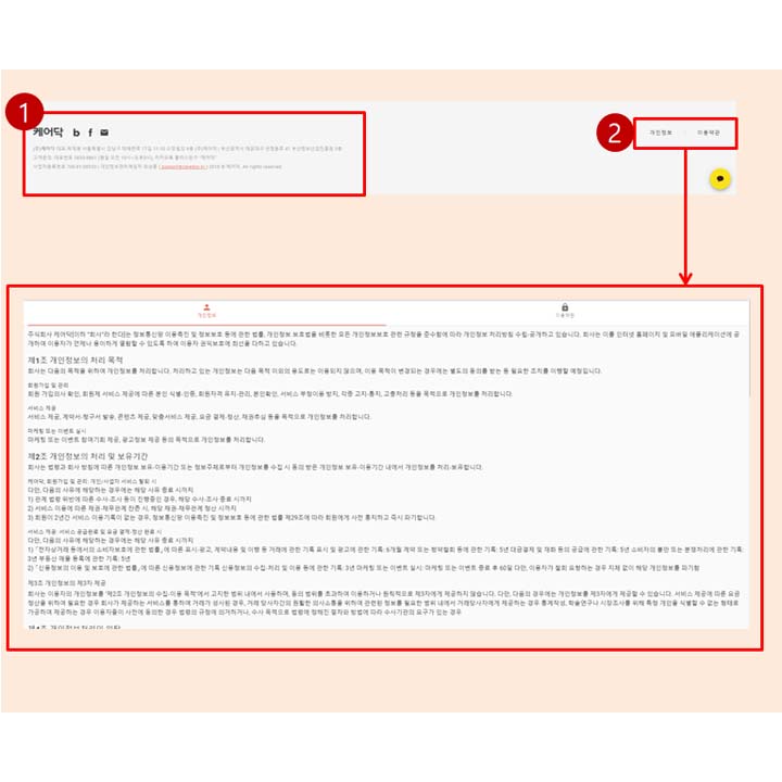 개인정보와 이용약관을 탭으로 만들어
