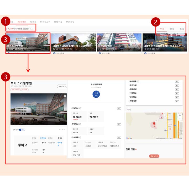 사용자가 서비스가 필요한 지역,시설을 검색할수 있는 UI와