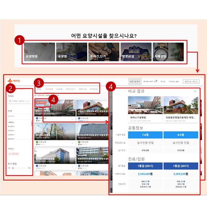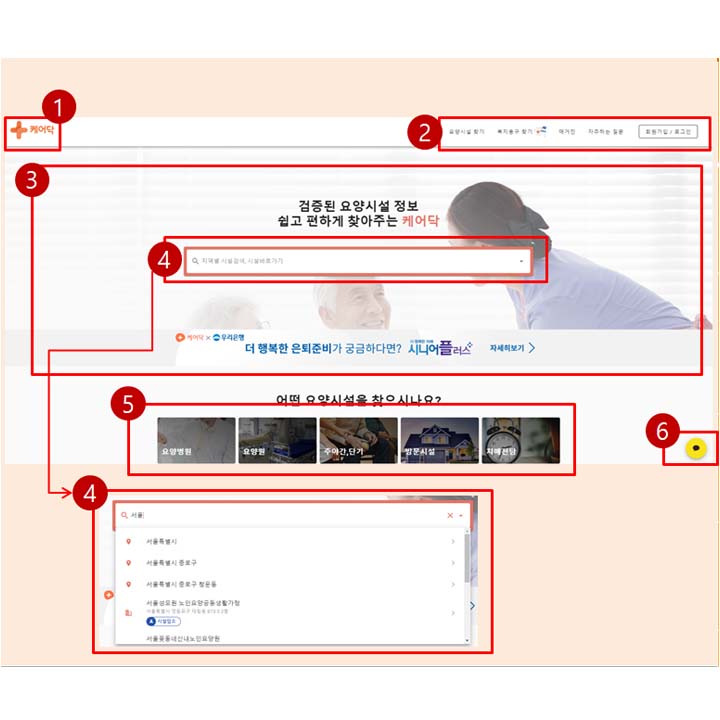 케어닥 홈페이지는 어떤 구조와 기능으로