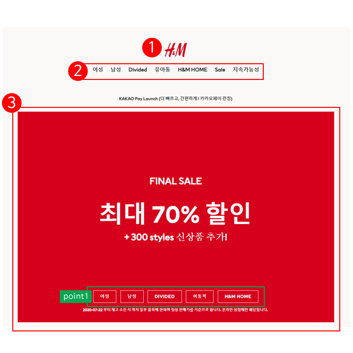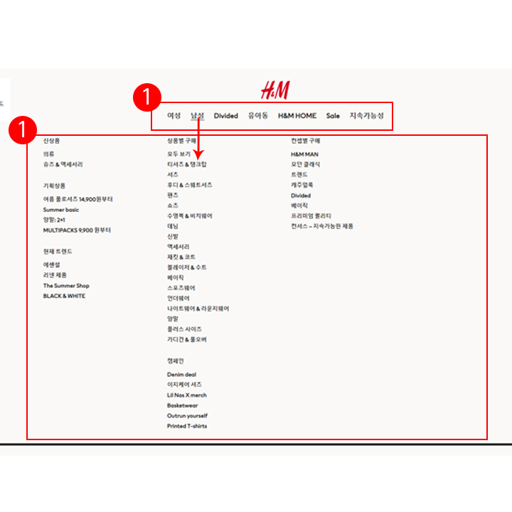 H&M 홈페이지처럼 간결하고 심플한 구조면