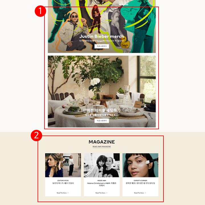 H&M브랜드의 잡지내용이 삽입된 섹션인데요.