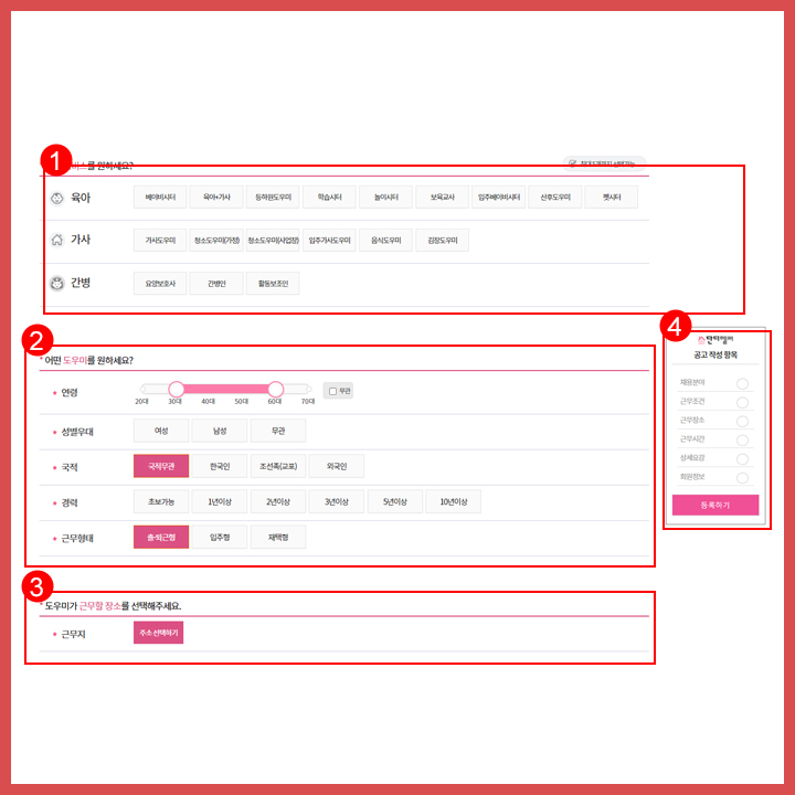 베이비 시터, 가사도우미를 사용자와 구직자간