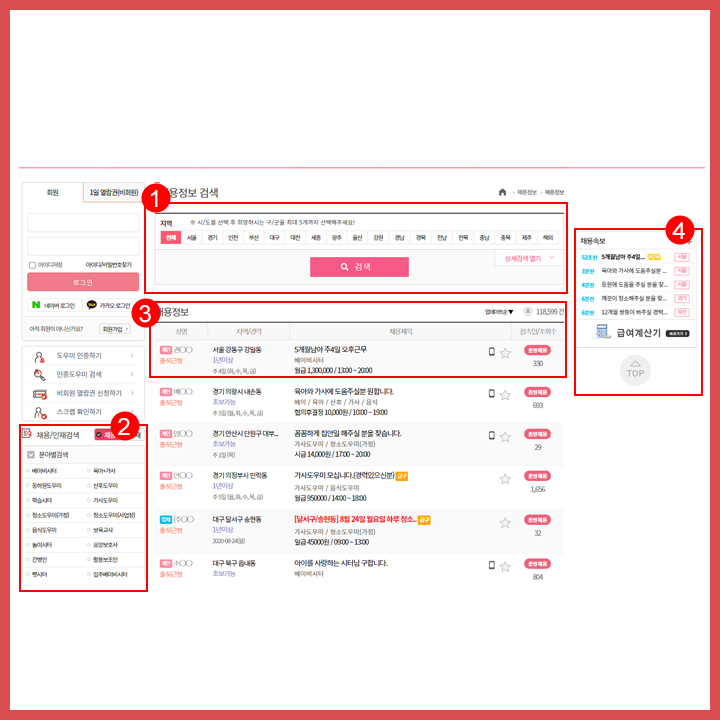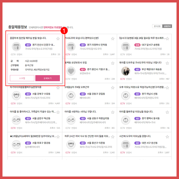 베이비 시터, 가사도우미를 사용자와 구직자간