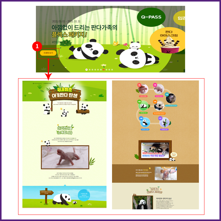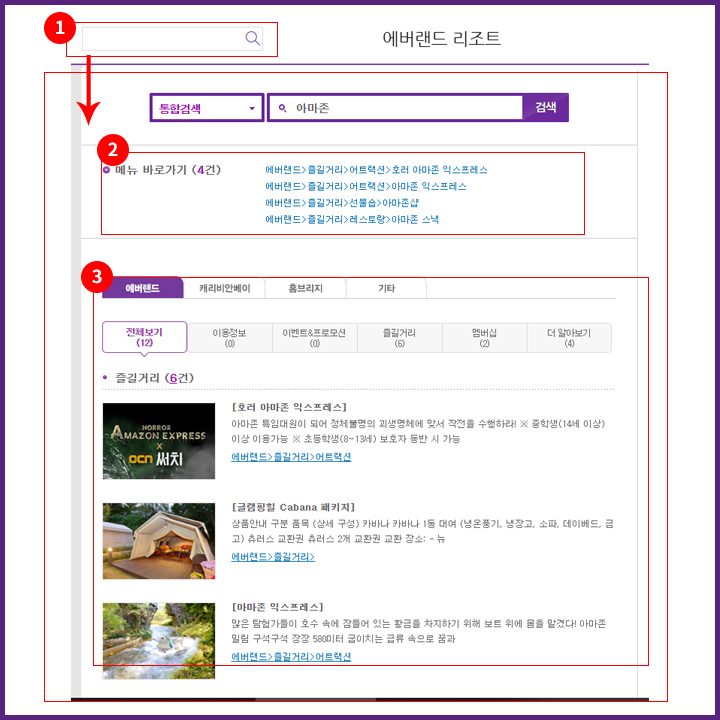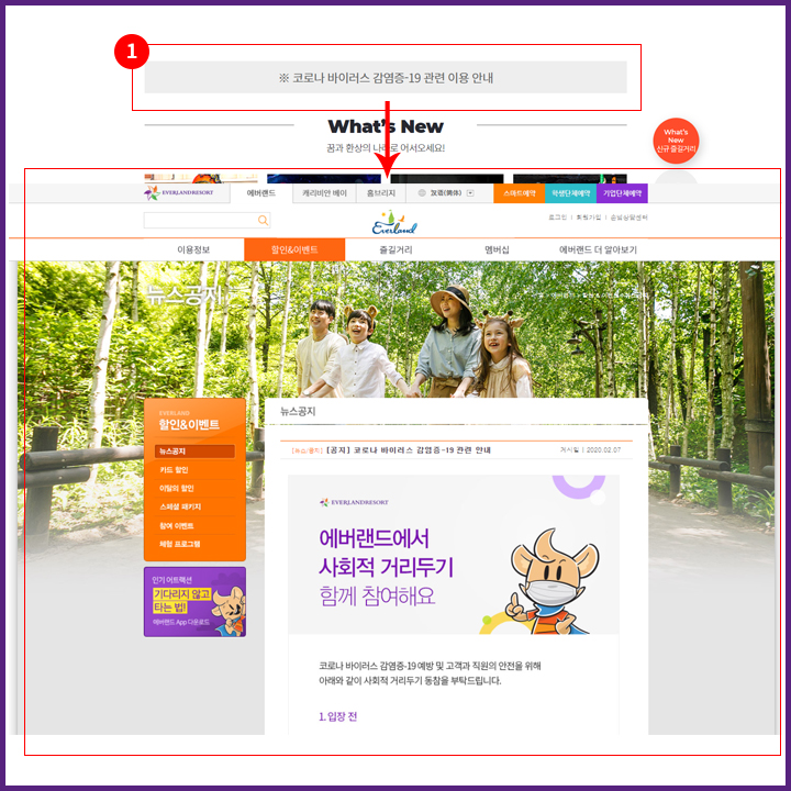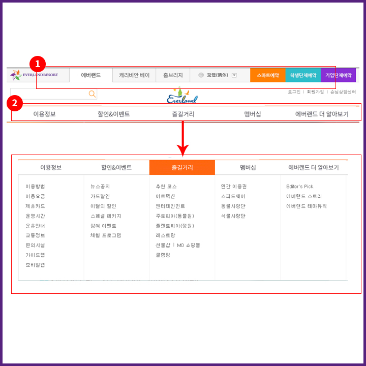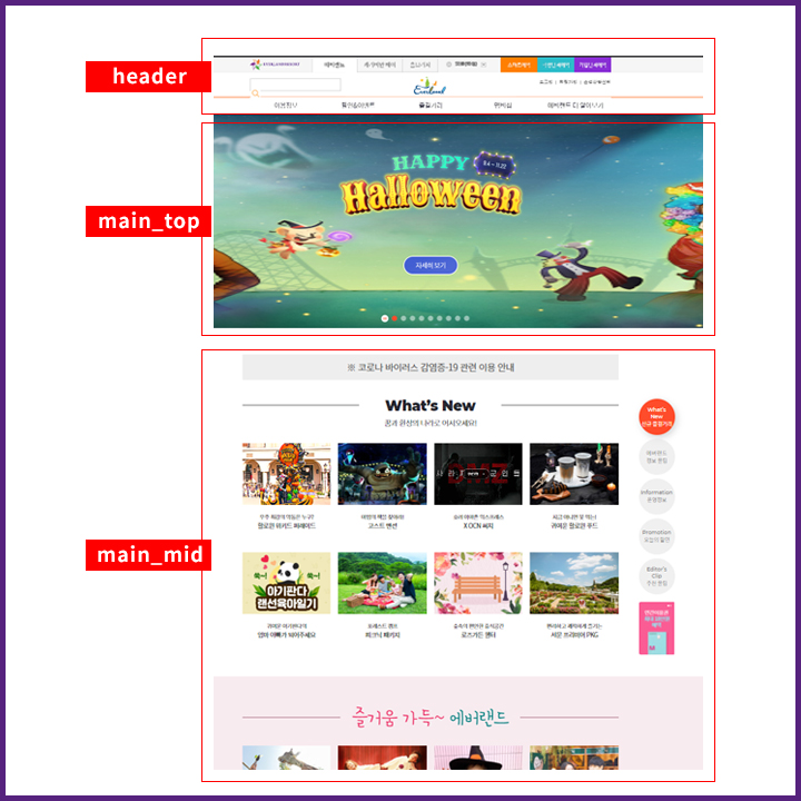 에버랜드는 메인화면에서 다른 페이지로 연결되는 링크를 시각적으로