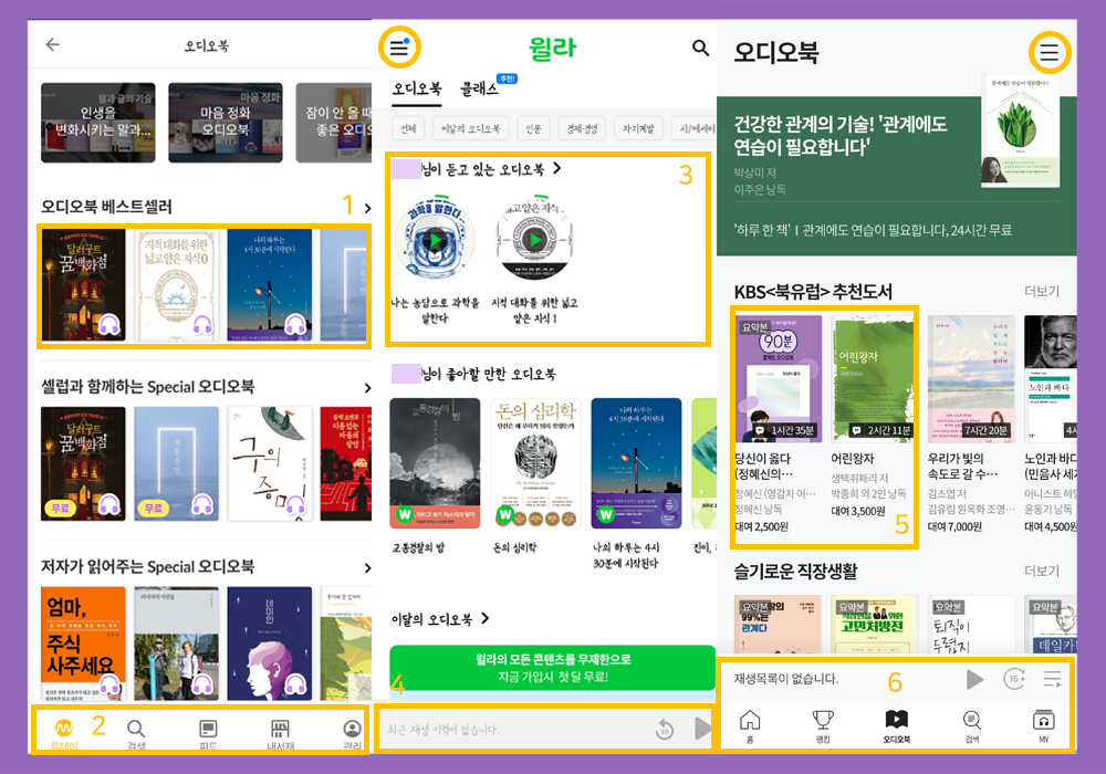 헤드셋모양의 아이콘을 통해 오디오북이라는 것을 직관적으로 표현하고 있네요!