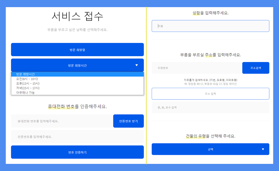 직접 서비스 예약을 가상으로 체험해본 후 느낀점은 전체적으로 깔끔한 디자인을 사용하여