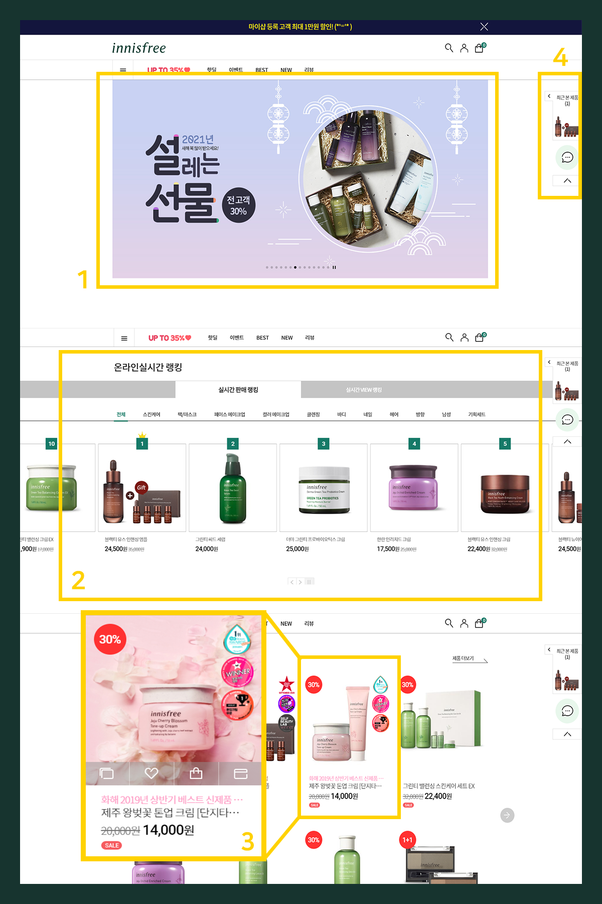 이니스프리만의 특색있는 홈페이지가 될 거 같습니다.