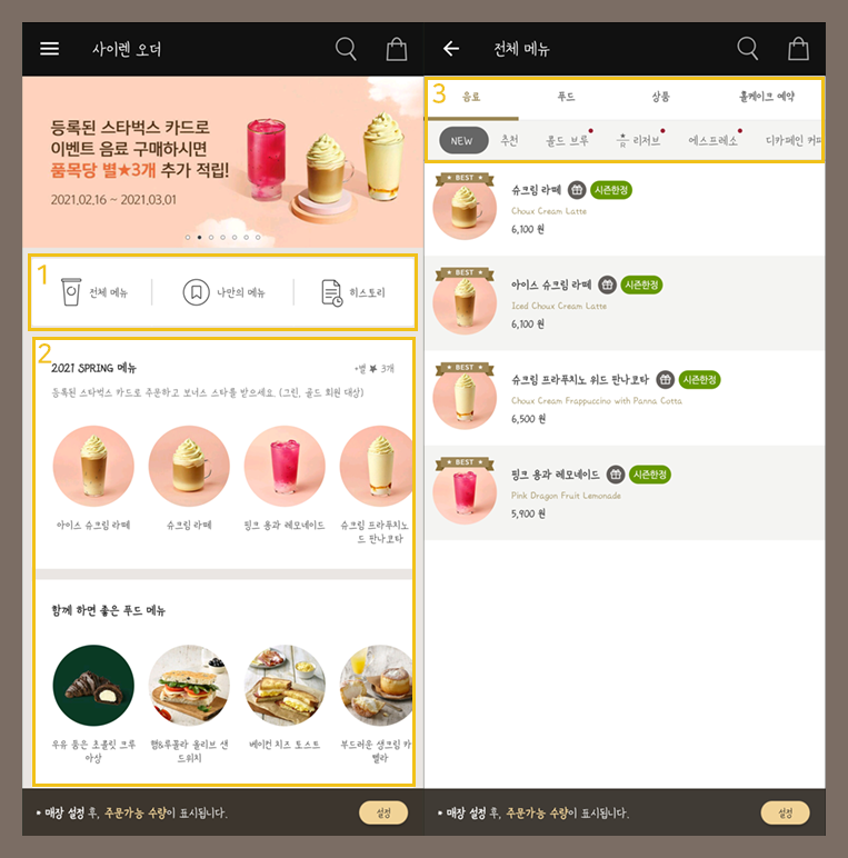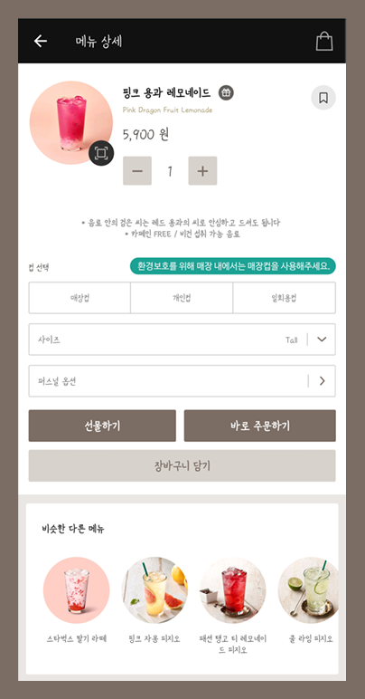 스타벅스 주문페이지에는 유사한 서비스를 제공하는
