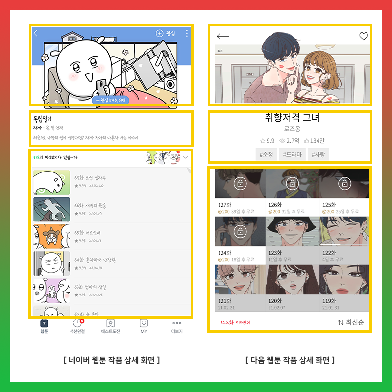 네이버, 다음 작품을 각각 눌러보면 작품 상세페이지에