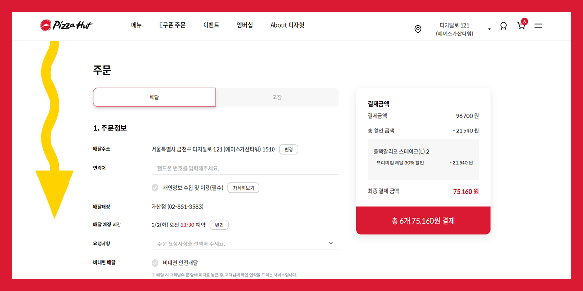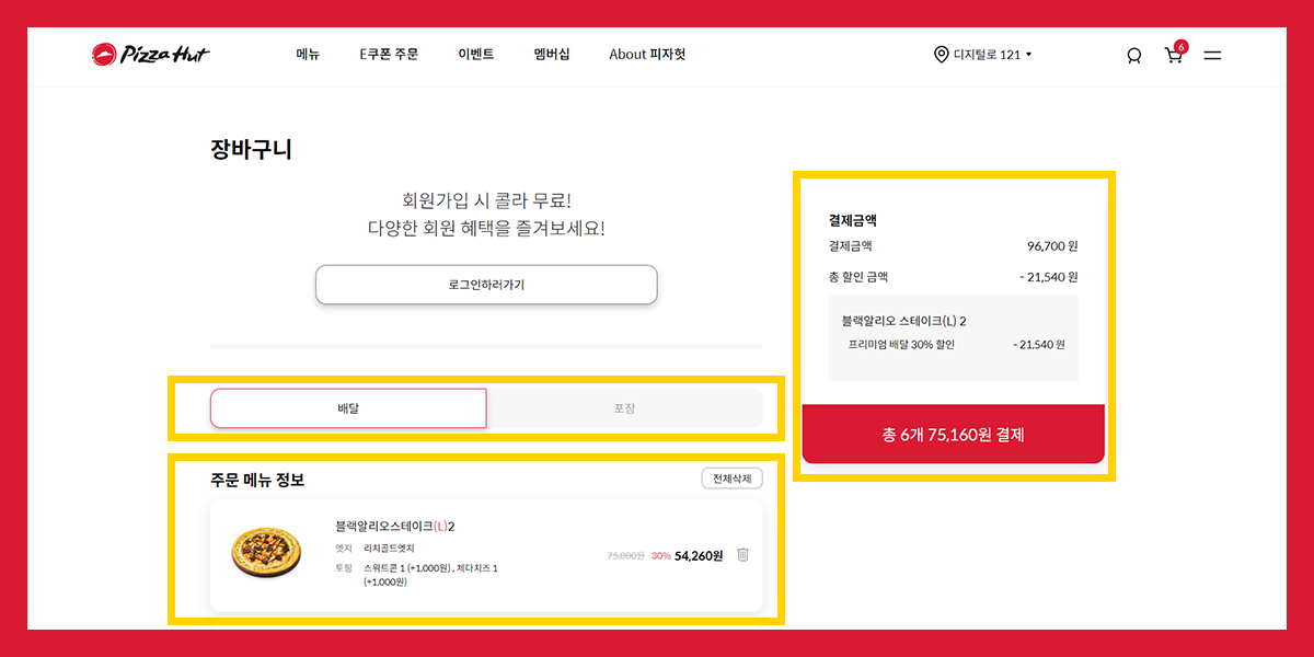 피자헛 주문, 결제 페이지부터 브랜드관까지