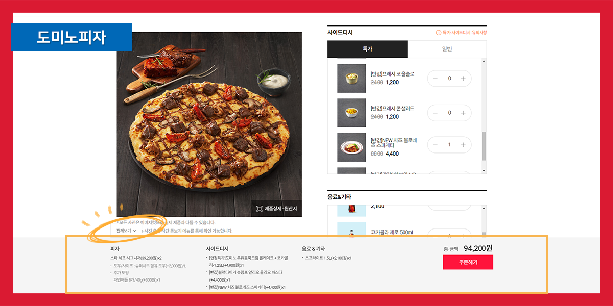 도미노 피자는 피자헛과 주문 페이지가 유사합니다.