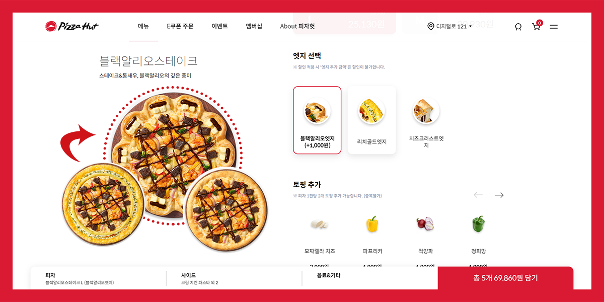 피자를 주문할 때 에지 선택했을 때 뿐만 아니라