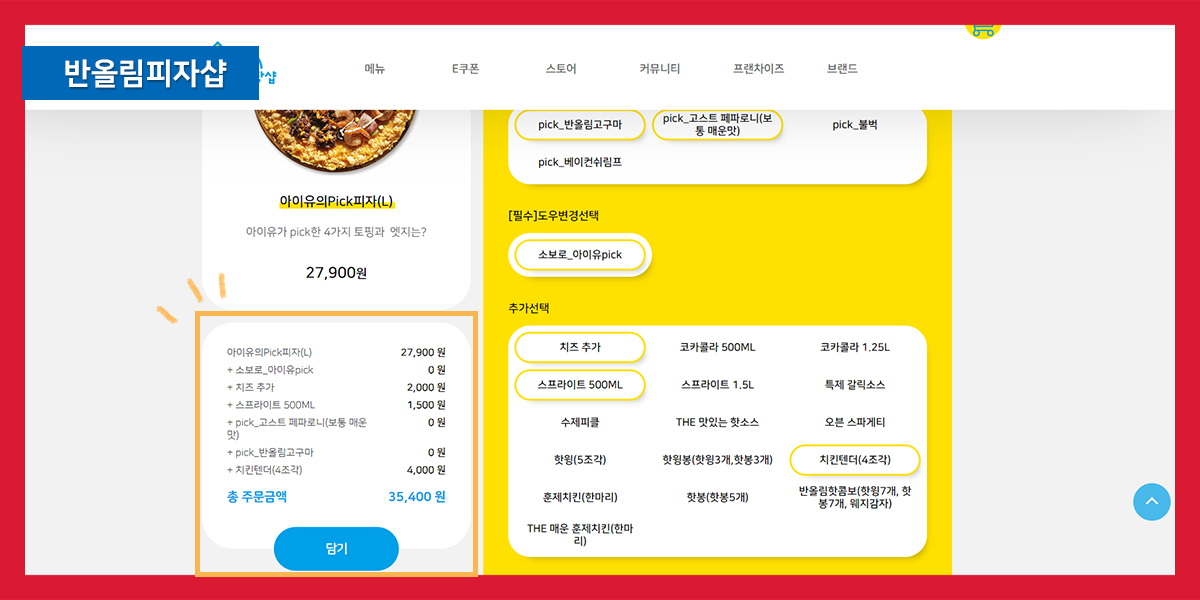 반올림 피자샵의 경우, 왼쪽 피자 이미지 아래에