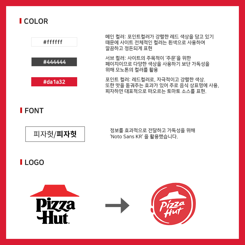 로고 모양 역시, 빨간 지붕 모양을 표현해 피자헛 로고가 탄생되었고