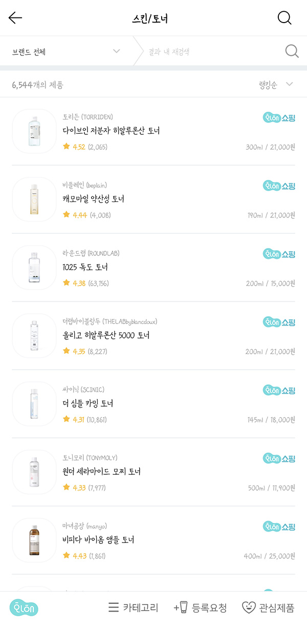 스킨케어 > 스킨/토너 페이지를 봐볼까요??